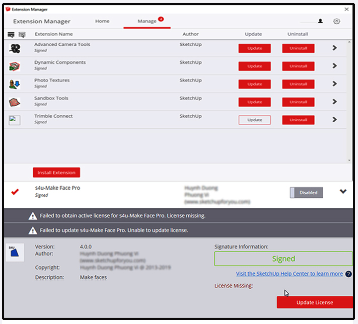 The SketchUp Extension Warehouse has uncounted kinds of extensions which come with their own licenses and if the license expired then problems occurred while working.