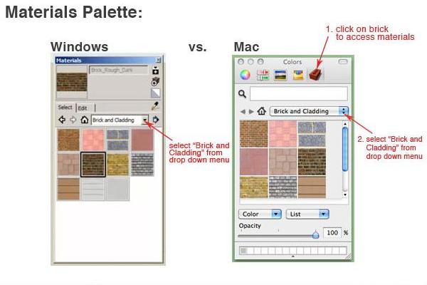 In your materials palette, choose "Brick and Cladding" from the drop down menu, then click on the material you’d like to use for your buildings.