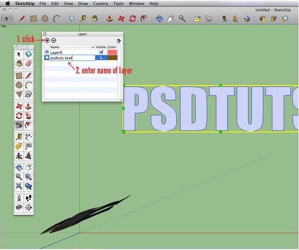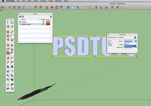 Your text has been officially moved. Feel free to close your "Entity Info" box, and if you wish, you can check to make sure you put your text on the new layer by unclicking the little checkbox under "Visible" in your layers palette. To be sure we put everything else on a different layer, make sure the radial button in the layers palette near "Layer 0" is highlighted (the same as the image above). Now, time to get to business!