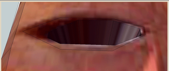 This is the subdivided mesh. Notice the abruptness of the subdivision near the mouth. This because there is big area below the mouth and the distance between the edge of the mouth and side is too small. The lines diverged on that area whilst you can see some abruptness.